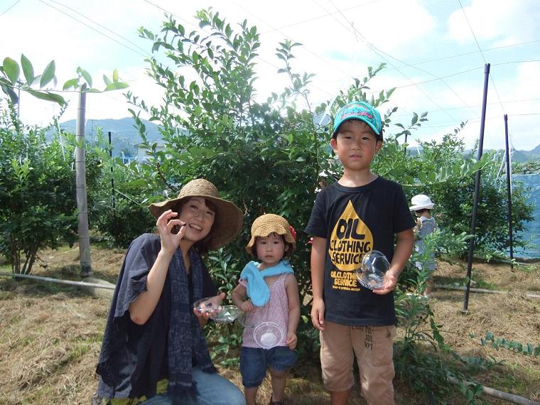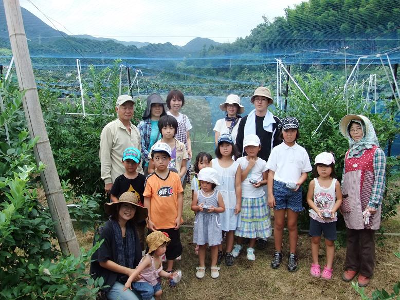 | 8月5日午前10時〜 近所のこども達に声かけてブルーベリー収穫体験に来てもらった。わいわい一時間ほど収穫体験 こども達も農園に来る事がないし入って採る事もないだろうから 来てもらった。 ブルーベリーの苗とピイートモスに助成してもらったから ブルーベリーがこんなに大きくなりましたと 町民の方にお知らせしたいので ブルーベリー収穫体験をしました。 |